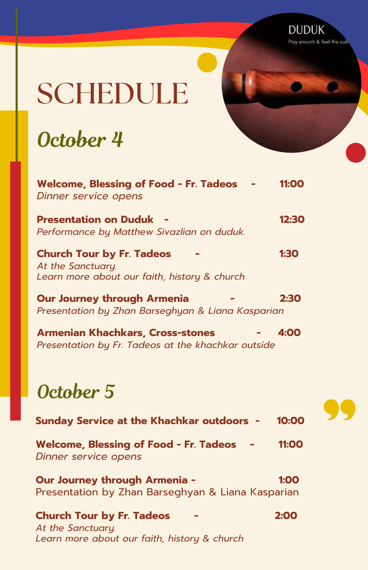 We are excited to invite all of you to this year’s annual Armenian Festival. We are happy to come together again as community members, friends, and neighbors to celebrate our Armenian heritage and faith.