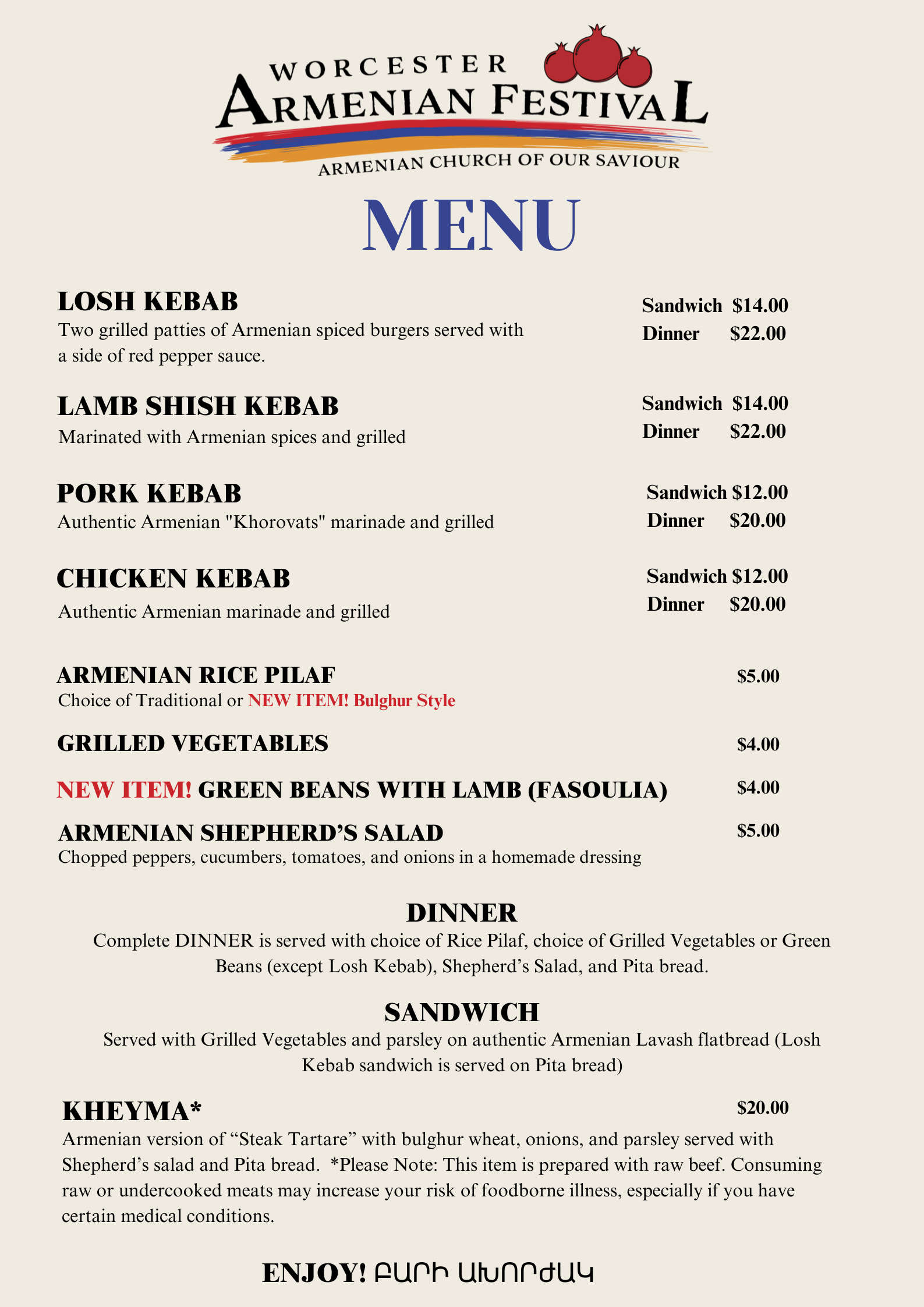 We are excited to invite all of you to this year’s annual Armenian Festival. We are happy to come together again as community members, friends, and neighbors to celebrate our Armenian heritage and faith.